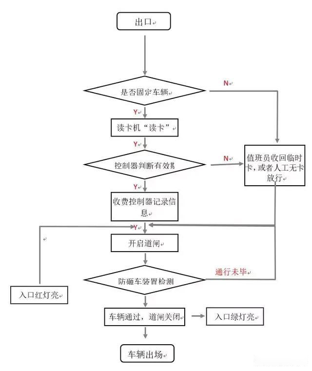 b、入口車(chē)輛經(jīng)過(guò)道閘后,道閘自動(dòng)落桿,當(dāng)車(chē)輛經(jīng)過(guò)出口紅綠燈檢測(cè)器后,出、入口兩端重新恢復(fù)為綠燈;