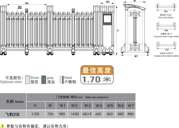 13.機(jī)頭輪輪轂采用高強(qiáng)度鋁合金材料壓鑄而成。輪轂外面采用原生橡膠,在10米行程內(nèi),來(lái)回運(yùn)行100萬(wàn)次,走輪無(wú)明顯磨損,而且風(fēng)雨后的流沙絲毫不影響電動(dòng)門的正常運(yùn)行。